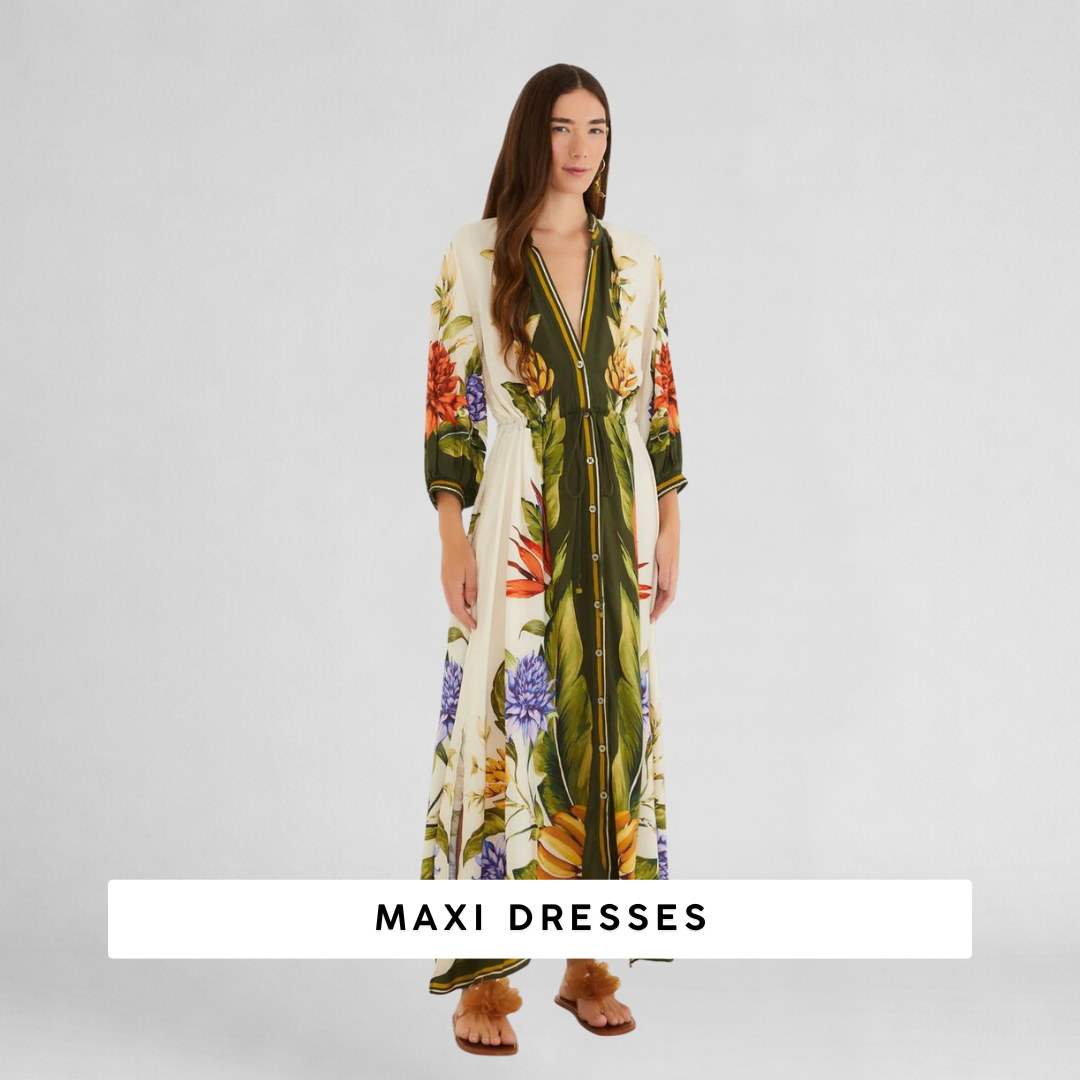 OCEAN VIBES PALM PRINT HALTER MAXI DRESS