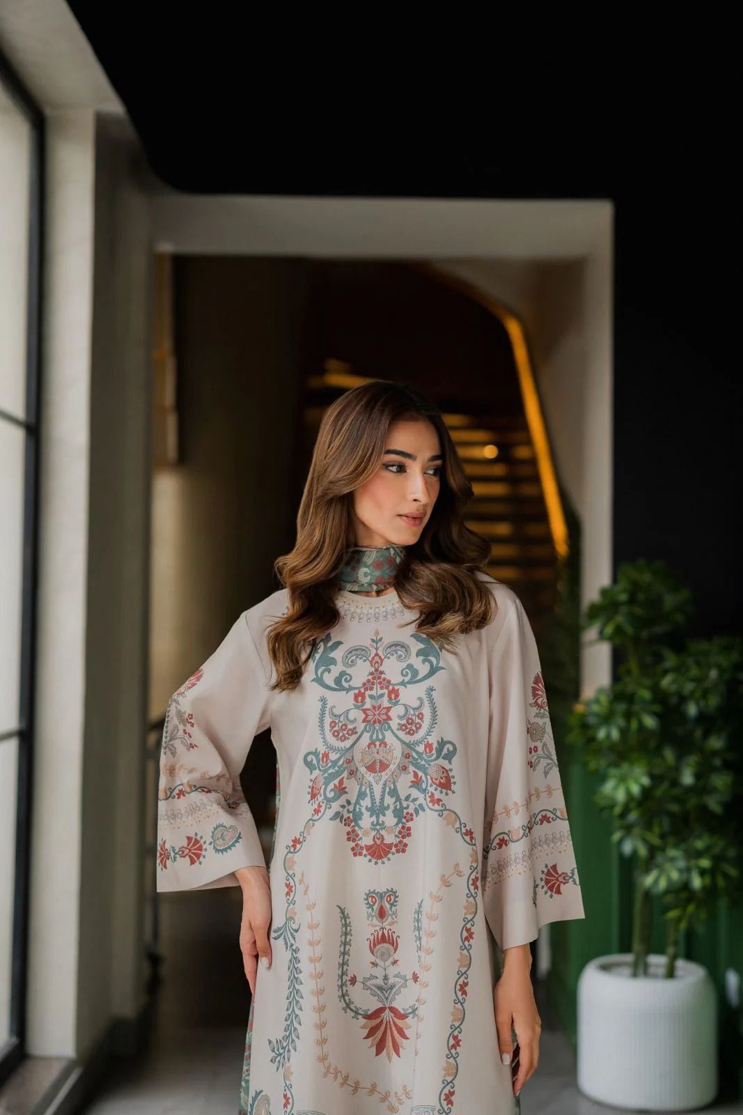 Designed in premium Korean BSY fabric, this piece flows beautifully with every step, giving you that rich, elevated feel without compromising on comfort. The delicate heritage-inspired motifs in muted tones bring a refined Indian aesthetic, while the relaxed kaftan silhouette keeps it modern and easy.